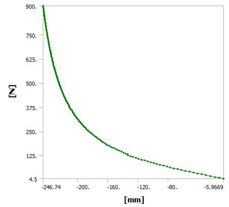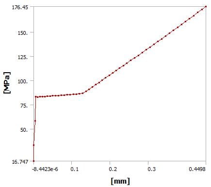 If I take my model and plot the maximum contact pressure under the bolt head vs. Y deformation of the tip of the top block, I get the following graph. Note that I had to set the initial substeps and minimum substeps to 50 each to get 50 points on the graph. This shows a significant nonlinearity. The modified 18.2 archive is attached here.