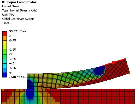 Below I plot the Normal Stress in the Y direction. You can see most of the body has a compressive stress.