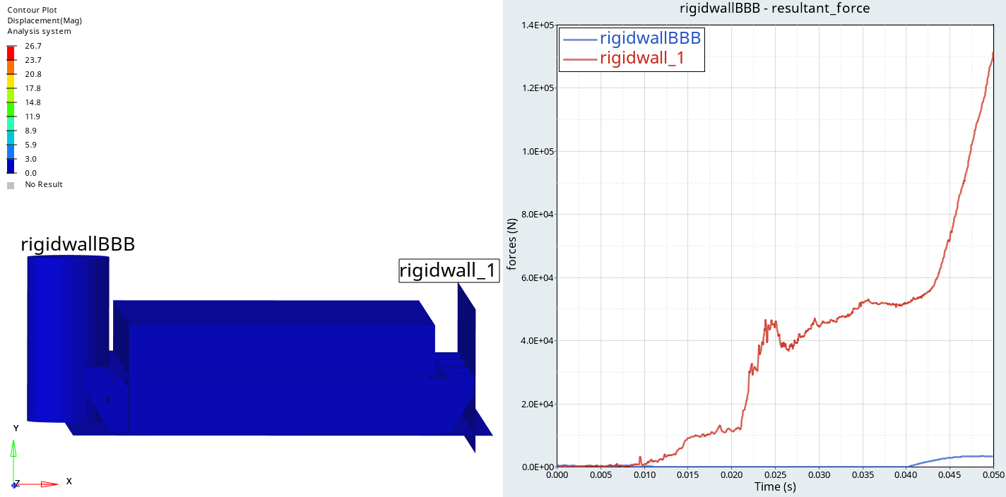 1、When testing with a small model(It is still the original model, with most of the components removed), the reaction force output of the rigid wall is normal;