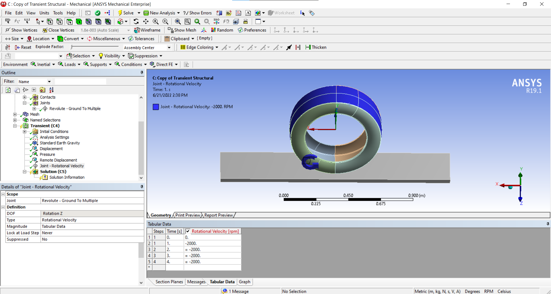 Since I'm looking at the temperature generated through frictional rotation I think it's better to use the Transient model.