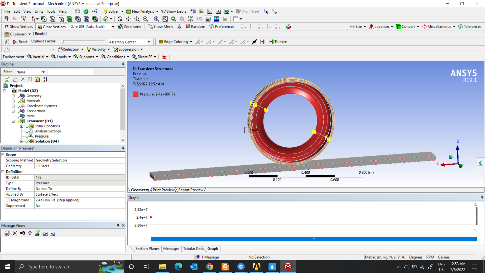 In the first step, I want to find the displacement of the tire. I will set the pressure condition on the inner surface of the tire. Next is the pressure but I don’t know how to set it properly. Hope you can guide me further. Thank you very much.