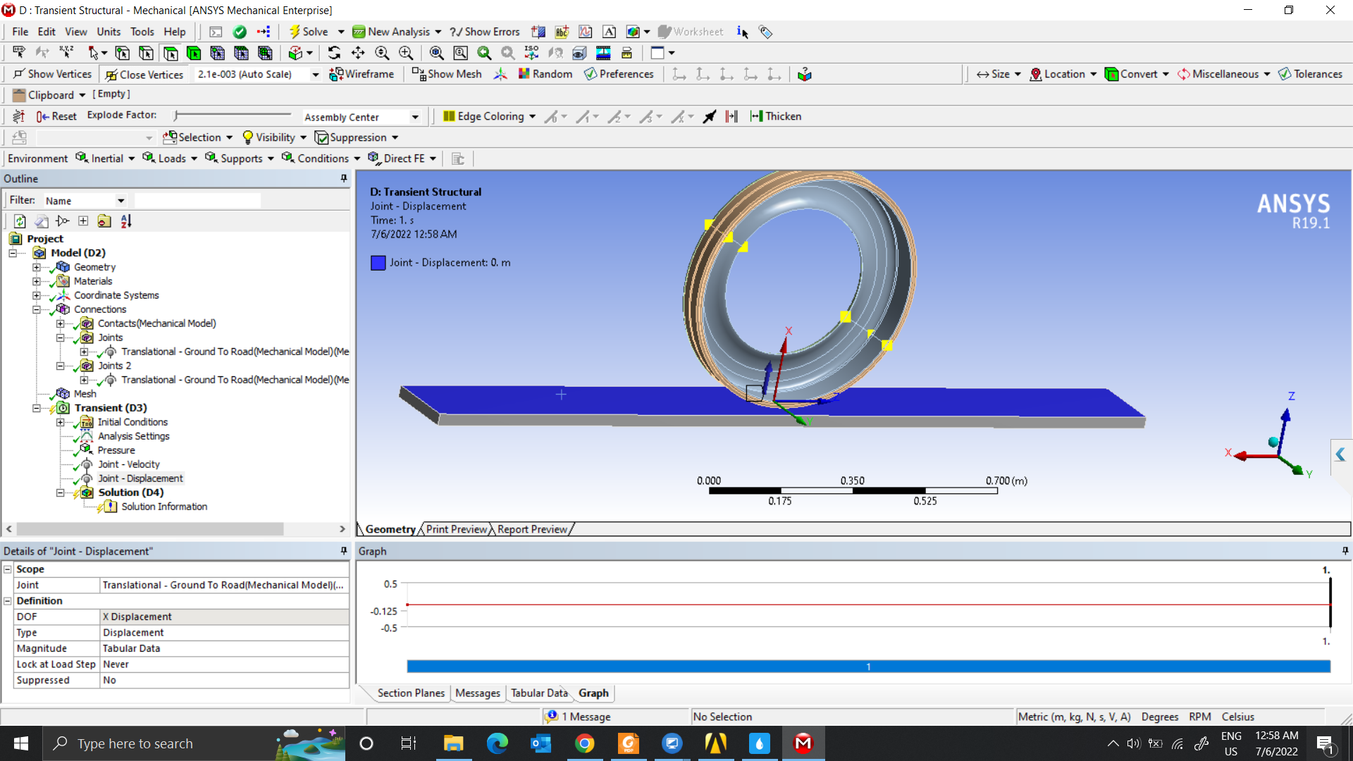 Step 3 change the road Translational Joint from 0 to the end displacement with Time Integration On.
