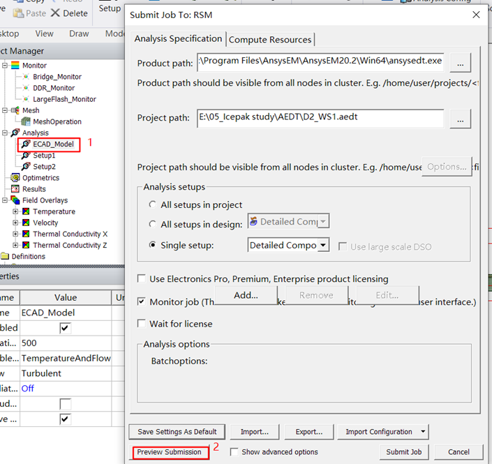 (1) 右键单击Analysis下的一个计算名,比如我的仿真名是ECAD_Model,然后选择Submit Job。