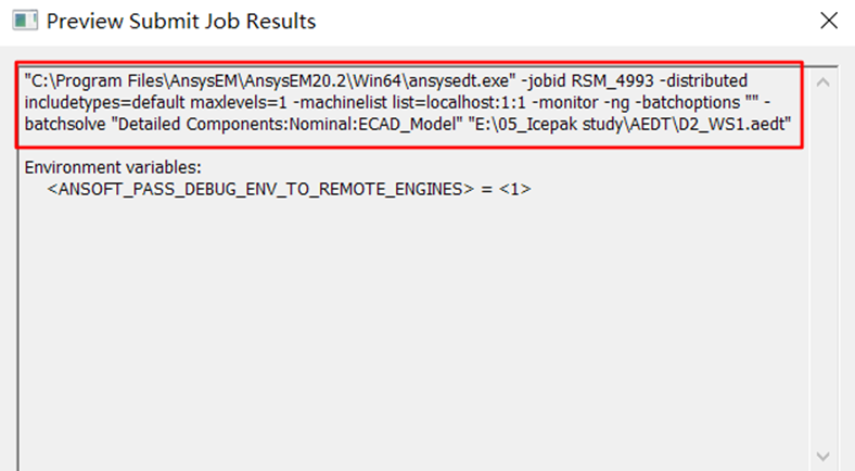 "C:\Program Files\AnsysEM\AnsysEM20.2\Win64\ansysedt.exe" -jobid RSM_365 -distributed includetypes=default maxlevels=1 -machinelist list=localhost:1:20 -monitor -ng -batchoptions "" -batchsolve "Detailed Components:Nominal:ECAD_Model" "E:\05_Icepak study\AEDT\D2_WS1.aedt"