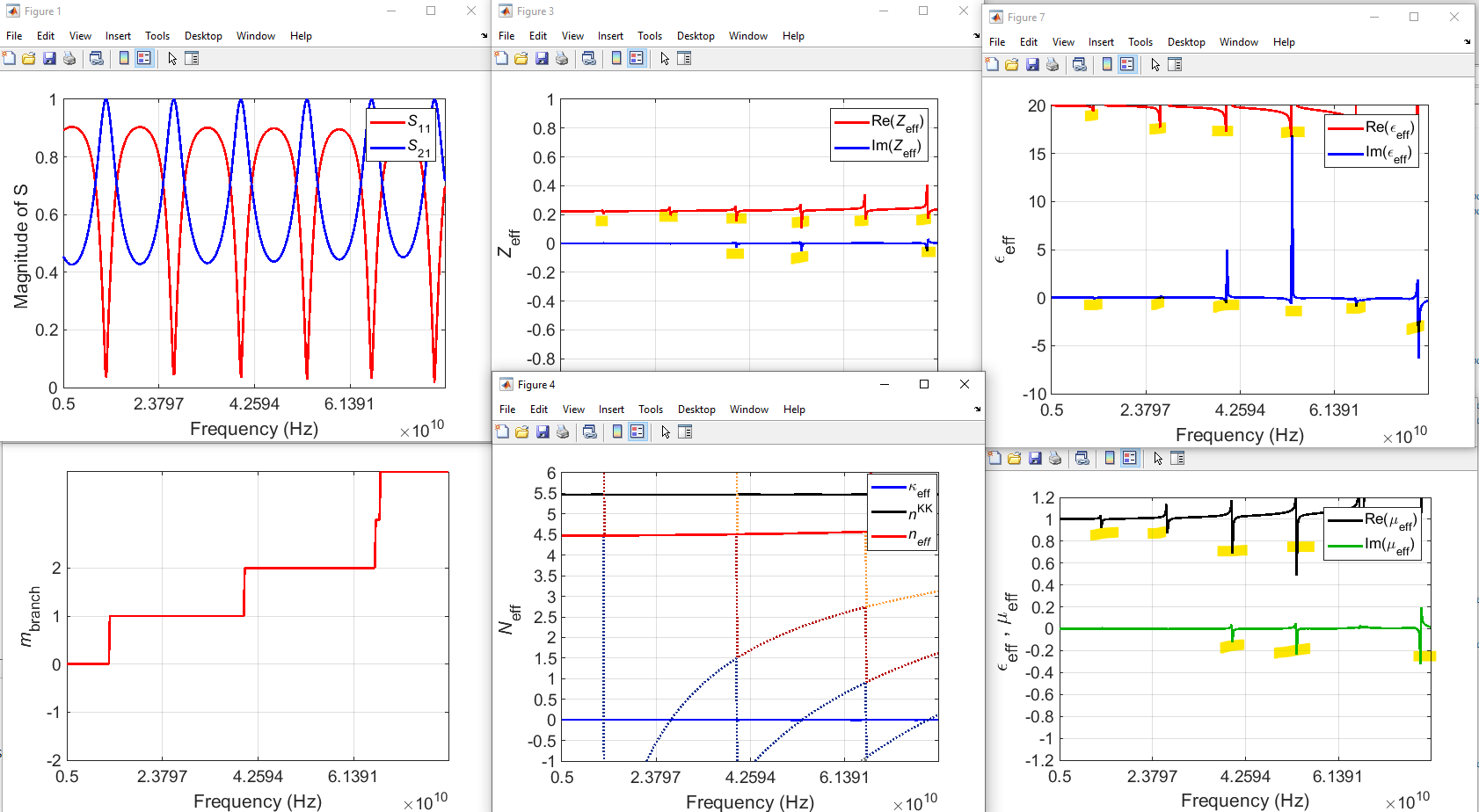 The problem I encounter when I extract the effective parameters, peaks without physical meaning appear on the impedance curve, these peaks appear when S21^2 is close to unity while S11 is close to 0.