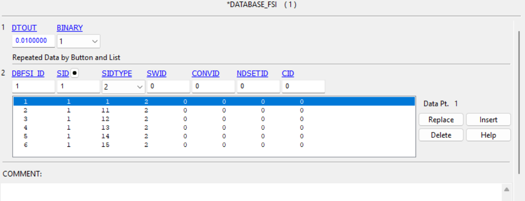 I've used DATABASE_FSI but if I define multiple elements to plot, when I select in output the ASCII files i get a strange "bug": just half of the requested plot are created and the others are equal to zero. I get multiple plots with the same values but they should not be, the elements selected in pre processing are different and the results are wrong because the pressure are not real