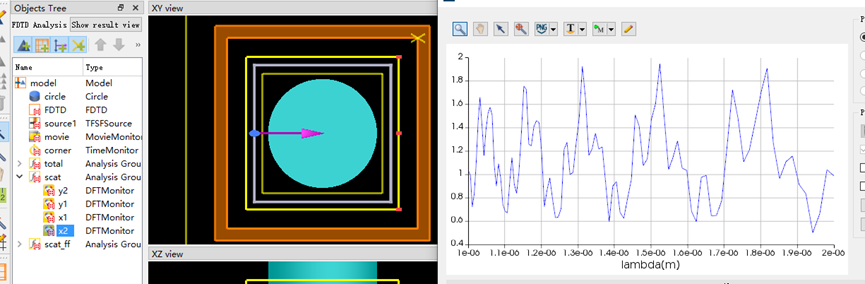 将圆柱的折射率从自定义的1.02改到了3.5,其它保持不变,然后发现散射分析组的x2先功率监视器的透射率是大于1的,