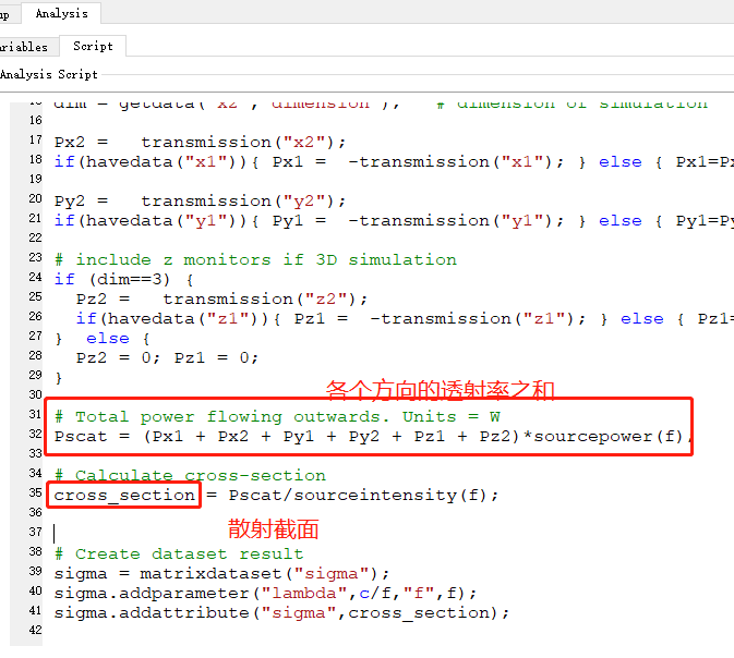 因为最后计算的是实际透射功率与强度之比,而强度是通过指定的光源振幅计算的,使用了实际功率就是正确的截面积。