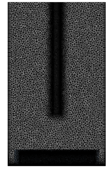 SubscriberHi, this is a semi-batch reactor so there are no outlets to remove liquid. Instead liquid level rises with respect to time. At the top is a pressure outlet condition which allows removal of air as it replaced by liquid mass fracions of species are set to 0 here. The pipe inlet is set using a velocity inlet boundary condition, mass fraction of calcium ion is set to 0.0016 and mass fraction of oxalate ion is set to 0. Rest of tank B.C are walls with no-slip. The case is isothermal. I am solving full 3D cylindrical geometry (image is shown of 2D plane)