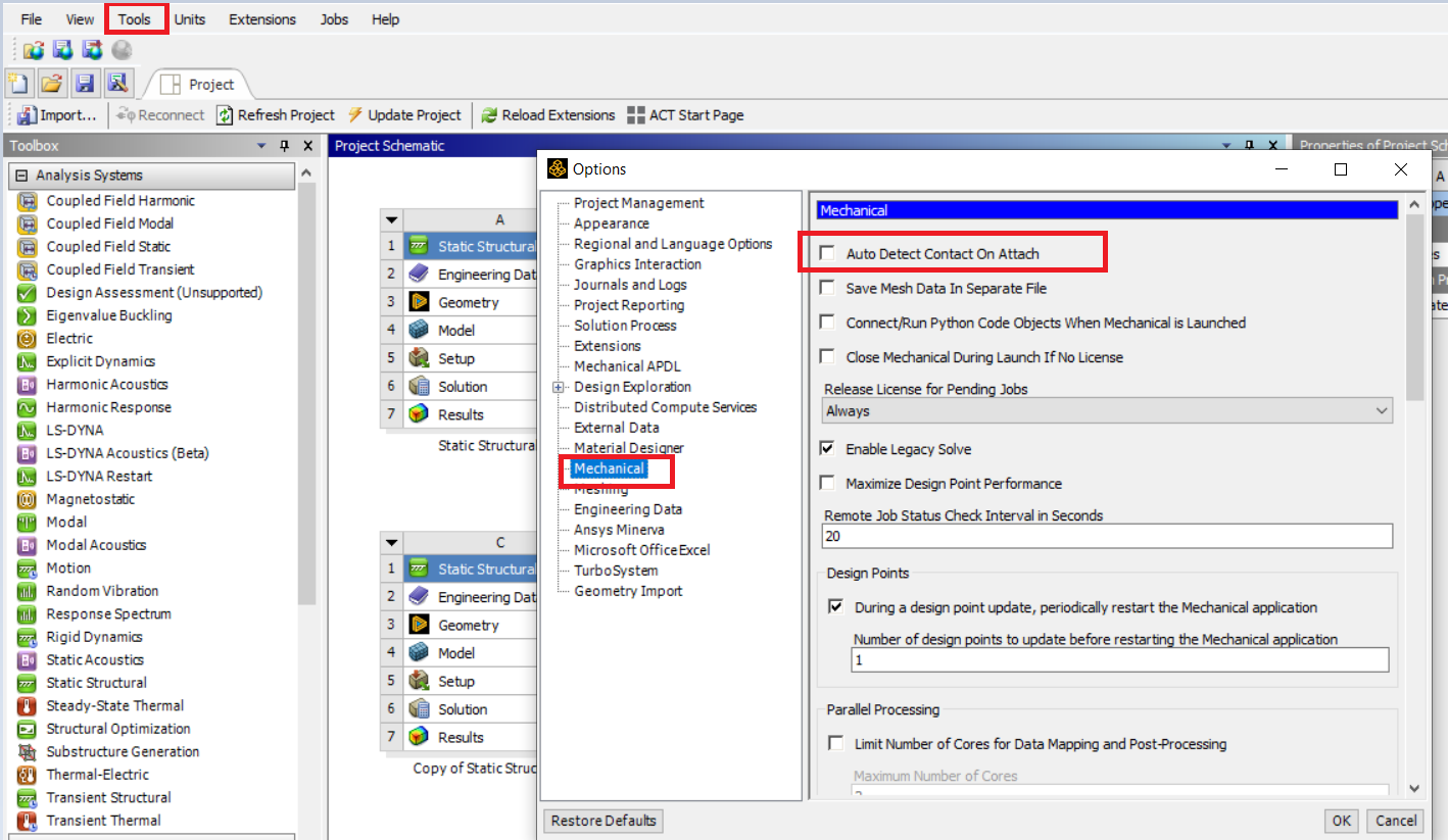 I have over 200 design points in my analysis. Due to the geometry being pretty complicated, every time it updates the geometry from Solidworks, it calculates contact pairs again and loses one contact pair - one of my frictional contacts basically goes back to being bonded with default settings. I don't want to calculate it one by one, setting up a new contact definition every time after updating geometry.