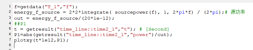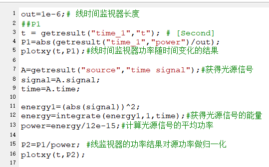 我觉得应该计算输入的自定义信号的平均功率,上述自定义信号的长度为20ps,在No Normalization设置下,根据下述三行程序计算输出端口的平均功率,