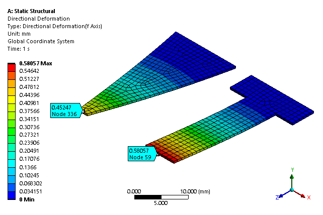 SubscriberYes, the change in deformation is due to the addition of the block. Move the block to the other end of the cantilever and you will see a much larger change in tip deformation. Move the block to the halfway point along the length and the tip deflection will be between the other two results.