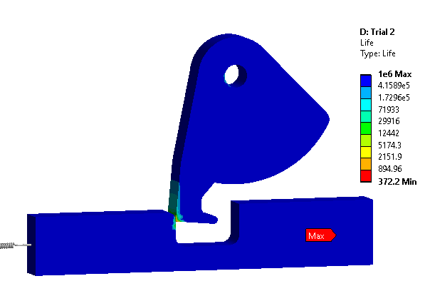 In the first trial, component 1 will rotate back and forth ( 2 steps), and as it rotates, it will push and pull component 2. i observed some stresses in the component, but in the fatigue tool, I am finding the componentās life to be infinite.