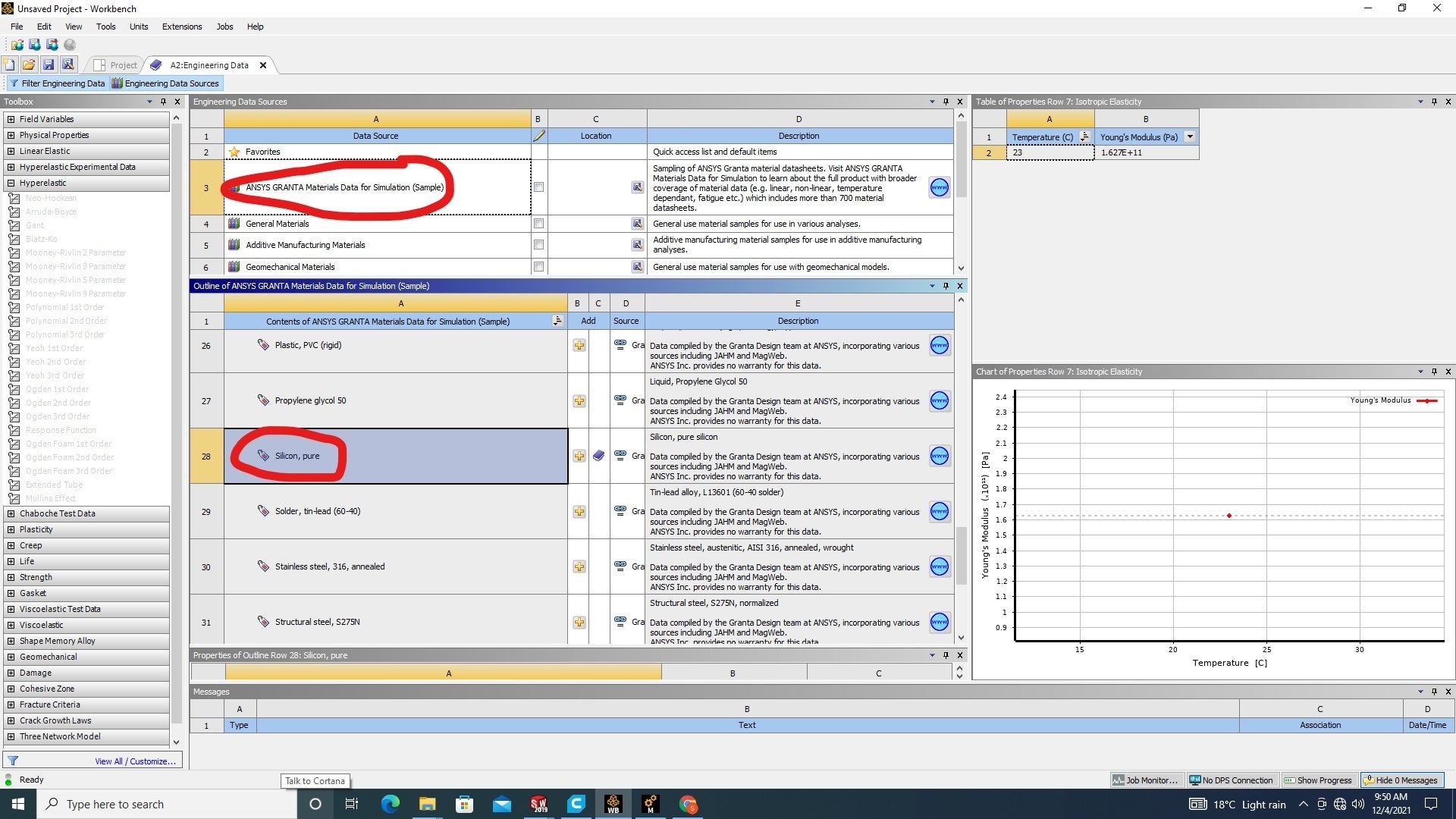 So I tried a simple structure with pure silicon which is already available in ANSYS material library. Still I am not getting a reasonable deformation result. Did I missing some basic setting / properties.