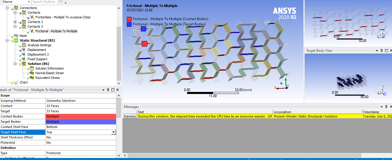 I'm Lidianne, graduate student from Brazil. I need help in simulation of honeycomb structure in static structural. Can you help me, please? The software don't accept solve the model, that is in the figure:Â