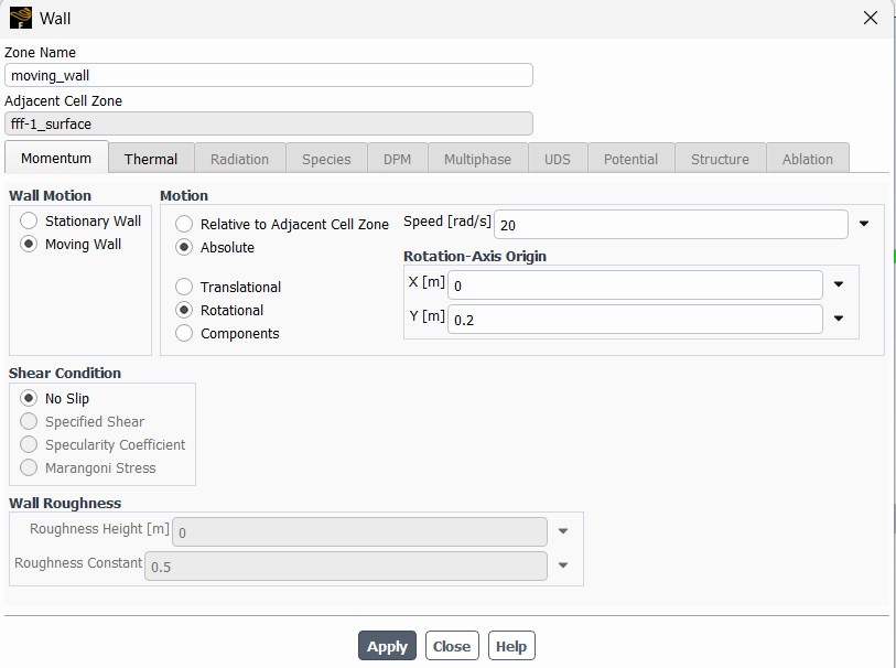 SubscriberI'm simulating this taylor-couette flow but no matter how fast I change the velocity of the inner wall, the velocity distribution of outerwall keeps unchanged. Boundary conditions are checked, outerwall sets as stationary, inner wall setting is at figure 1, result (figure 2) always has ripple at the end but no turbance alongside. I wonder how can i address this issue to make it change under differnet velocity settings.