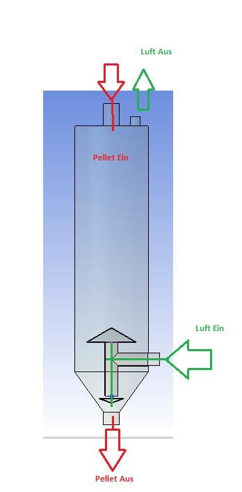 SubscriberThe whole vessel has a height of 10m and a diameter of 2.3m. The pipe has a diameter of 0.4m. The most critical parts is the air coming out of the pipe and colliding to the conical diffusor plates. My goal is to see how big does the pellets influence the velocity of the air close to the diffusor and lower vessel (4m height). I have done a lot of simulations without the pellets before just to see how the air behaves inside the vessel. My next step is to compare the 1phase and 2phase system without inflation layers.Â