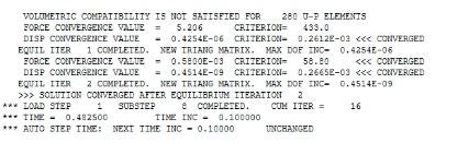 When I added command on rubber material there is no difference, I could not understand KEYOPT option was worked or was not work. But when I check solution output, I did not see any convergence value for mixed type elements. I added image.