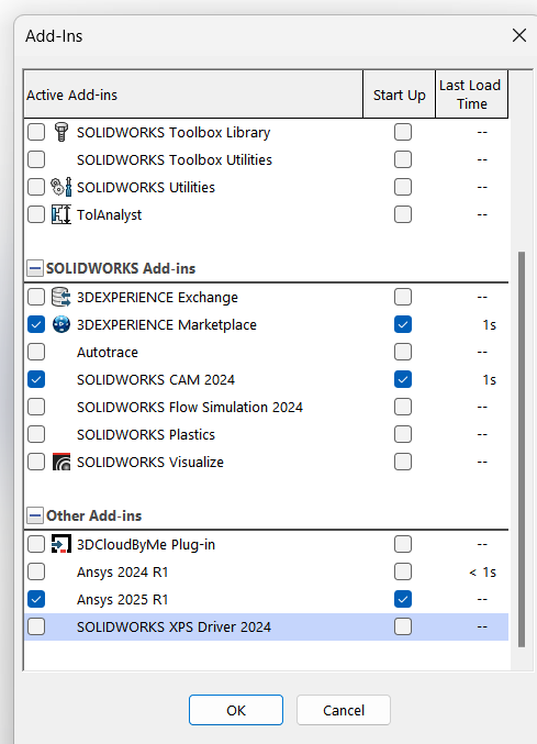SubscriberI'm running SW 2022. I can see the 2025 R1 plugin in SW. I click both windows trying to run C:\Program Files\ANSYSInc\v251\aisol\CADIntegration\SOLIDWORKS\winx64\WB251PlugInSWCOM.dll in the SW Add-Ins path. I press OK and still Ansys 2025 R1 doesn't appear in the SW Tools Menu. My admins swear it isn't their security software..... Dave G.