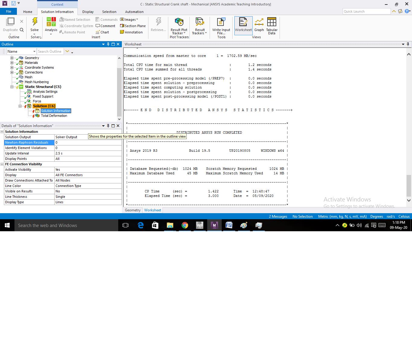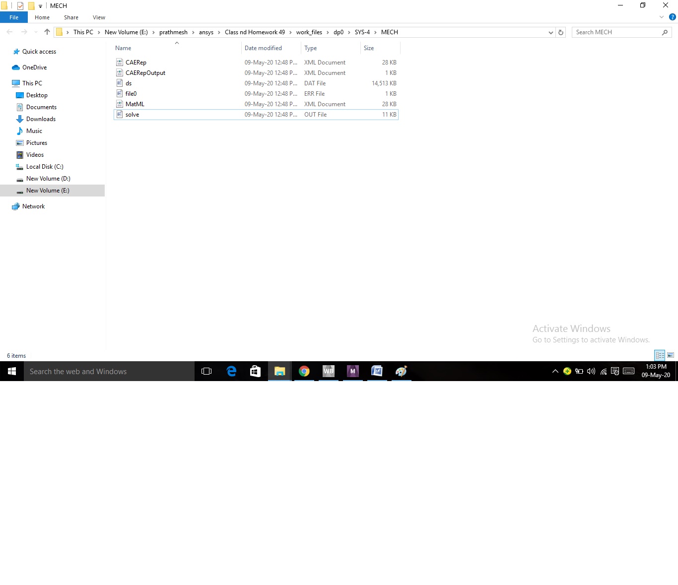 Ansys EmployeePrathmeshsanas2 Please right-click the Solution object and choose to open the solver files folder. Then screen-shot the contents and post it here. Next check the task manager, details looking first for ansys.exe does it exist? If so is it (or they) using a changing amount of cpu/ram/drive I/O ?