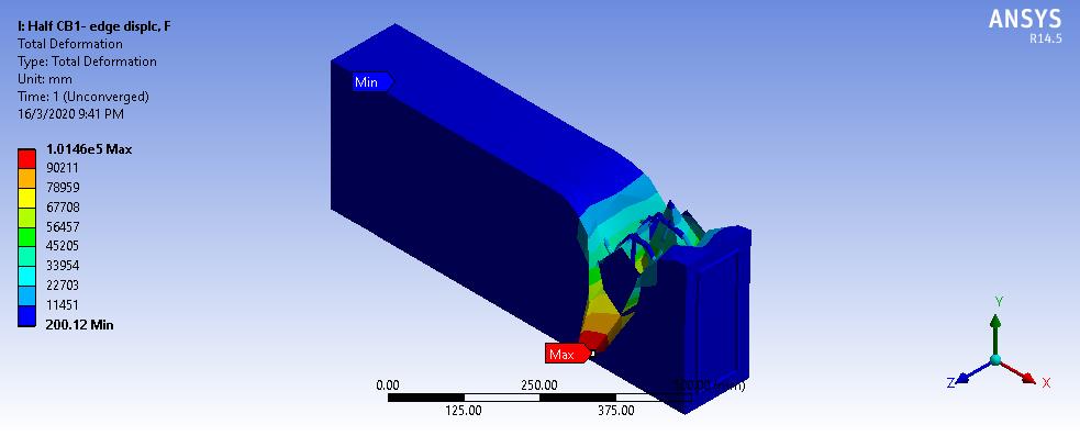 The unconverged solution (identified as time 1 substep 999999) is     Â