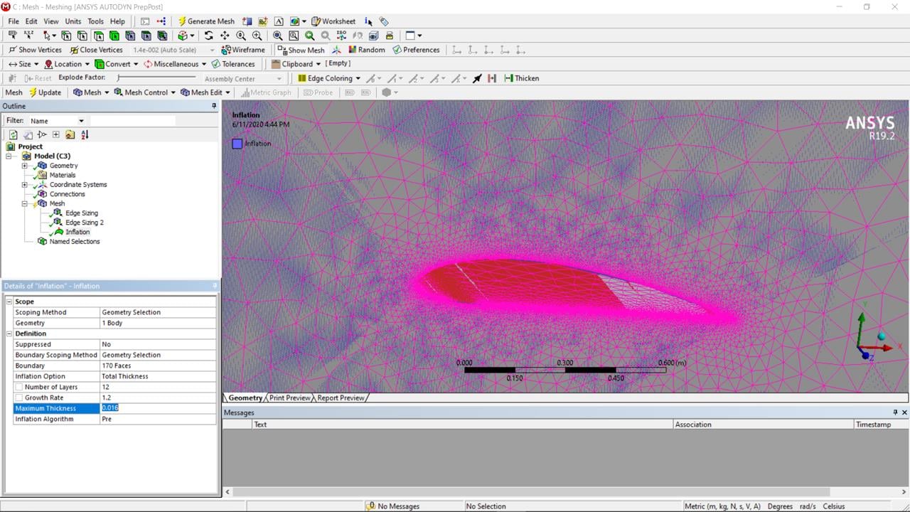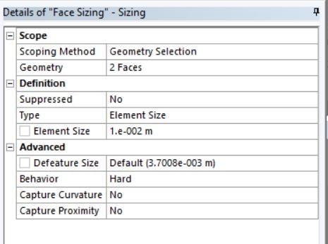 Then, I generated mesh using default setting except defeature size I reduced to 2.5e-004m and it succeed. Afterwards, the meshing procedure that were shown on the previous post was taken (edge sizing, inflation, face sizing). None of them showed any warning messages until I wanted to open in Fluent.