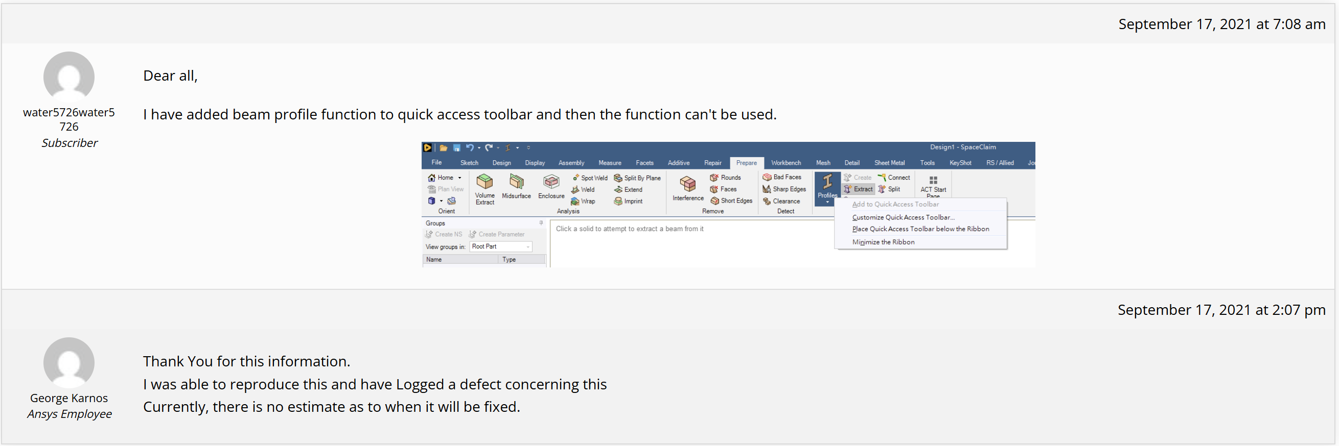 This quick-access menu issue was a longstanding defect in SpaceClaim and was deeemed as not worth fixing.ÂÂ