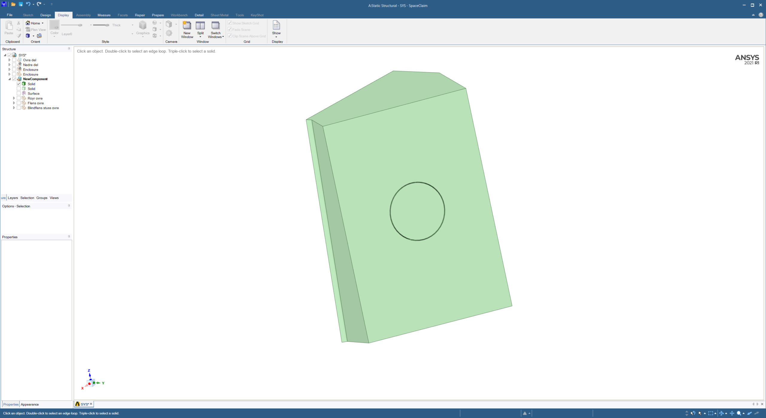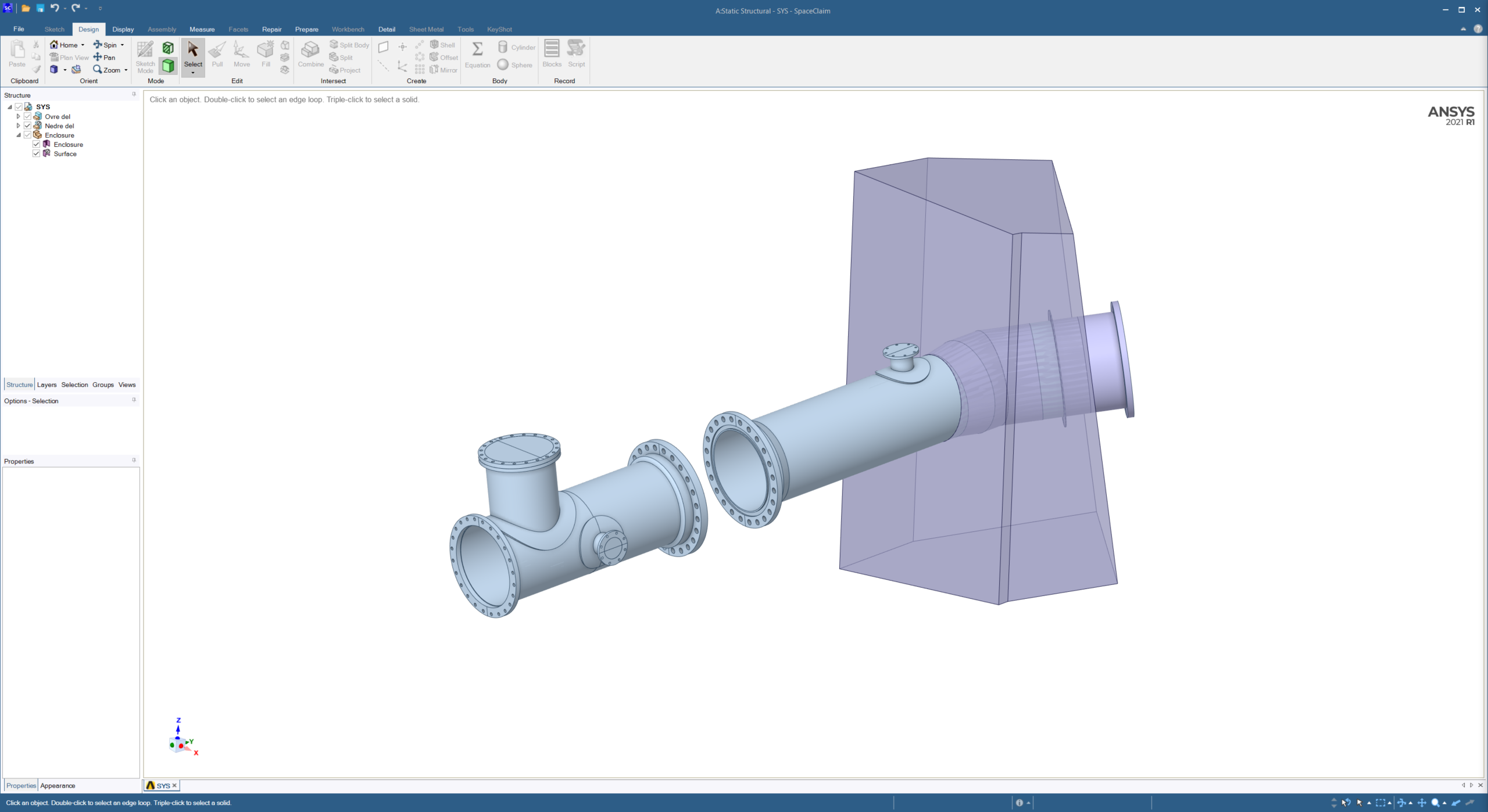 SubscriberI am modelling a water pipe going through a concrete block in SpaceClaim. The concrete will be casted around the outer boundaries of the pipe. In order to "wrap" the concrete block around the pipe I have modelled the block as an enclosure. However, this is not suitable when running the analysis in Ansys Mechanical. Is there a way to convert such an enclosure to a solid? Or maybe a better way of achieving what I have want to do?