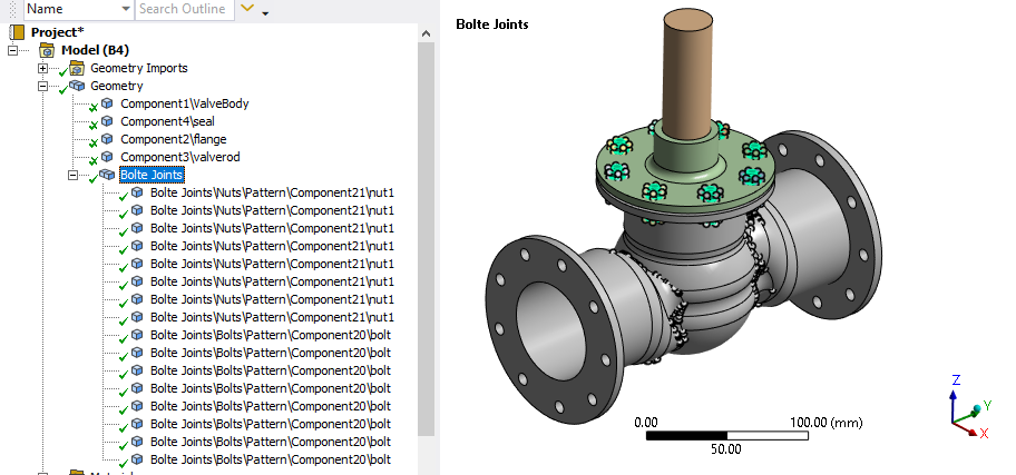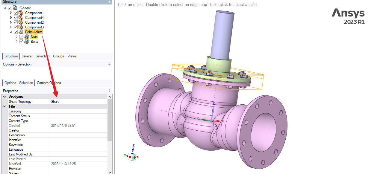 SpaceClaim界面将组件设置为”Share”或者”Merge”,所有的零件在Mechanical中归到同一个组件。