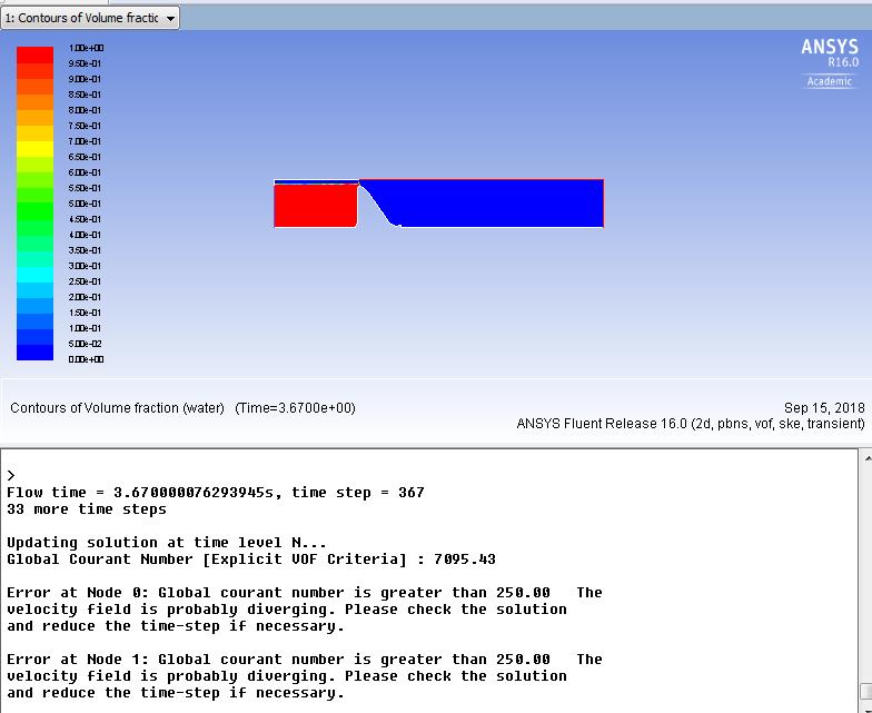 I felt this information could add to clarify my doubt. The velocity provided at the inlet is 0.892 m/s. The inlet in the present case is taken as the height over the crest of the spillway.Â