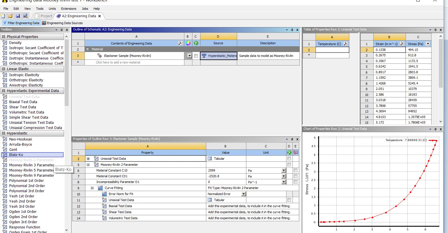 Sample data to model as Mooney RivlinStatic structural analysis system failed
