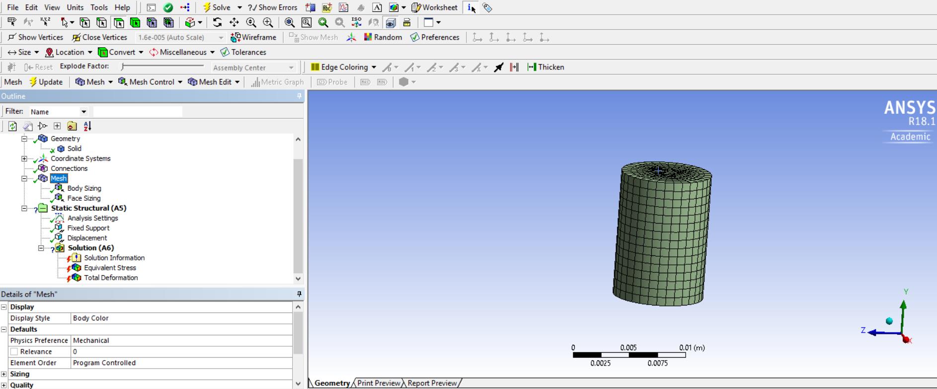 But that is not enough, it needs some more help in the form of Reduced Integration.  Under Geometry, set Element Control to Manual, Under the Body, set  Brick Integration Scheme to Reduced.