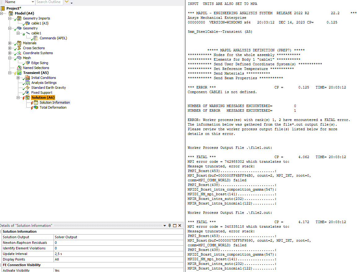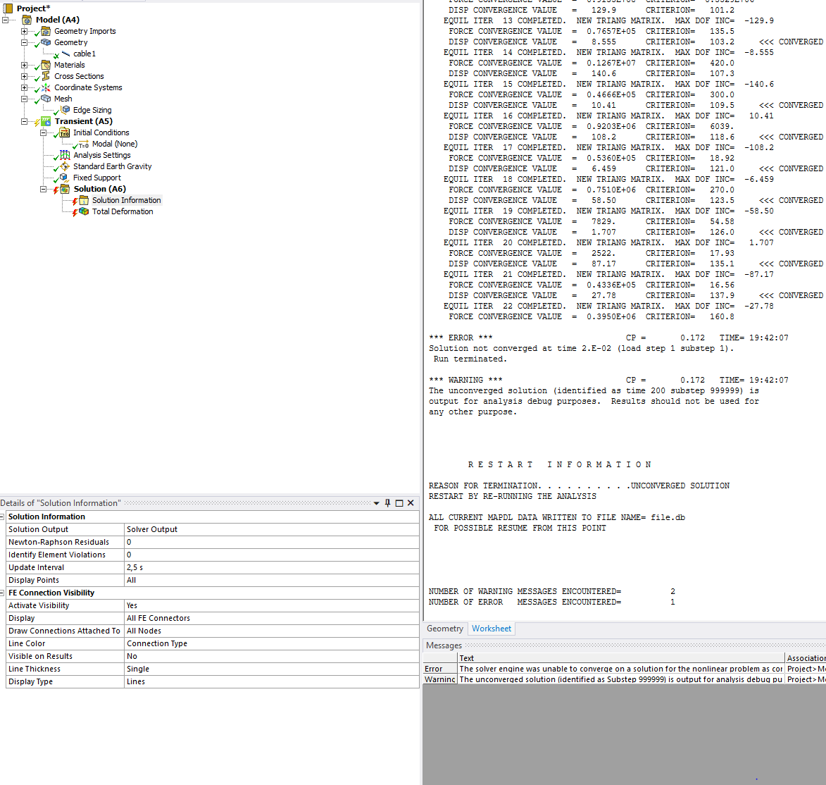 Solution not converged at time 2.E-02 (load step 1 substep 1).        Â