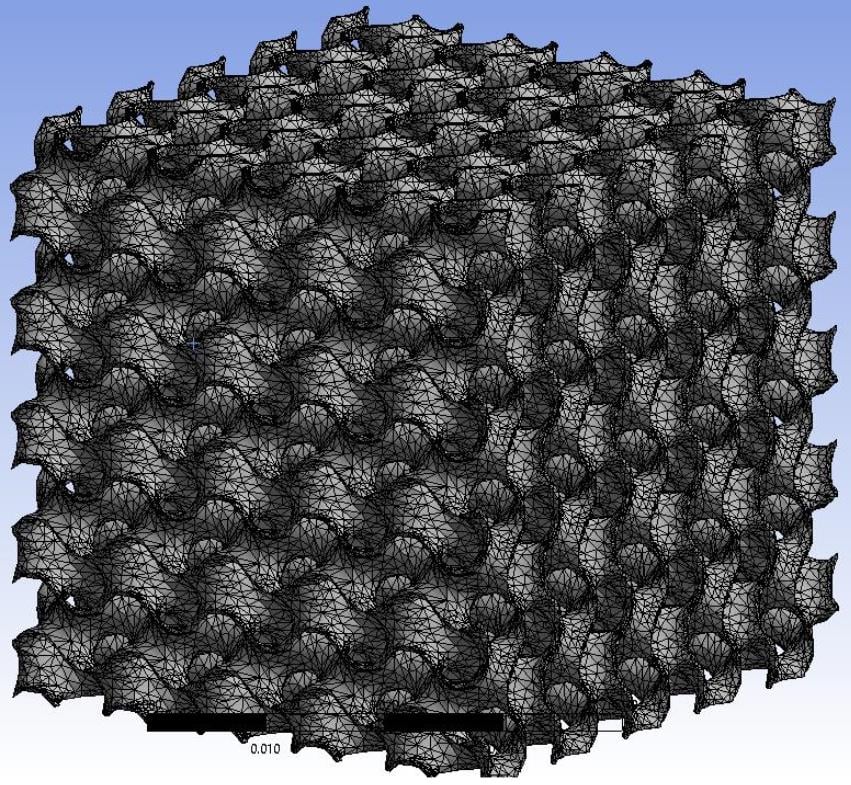 As I look at the image, there seems to be a periodic pattern of 5 units along each Cartesian direction. What happens if you take a single unit, so the geometry is 1/125 the size. Can Creo export just one unit?