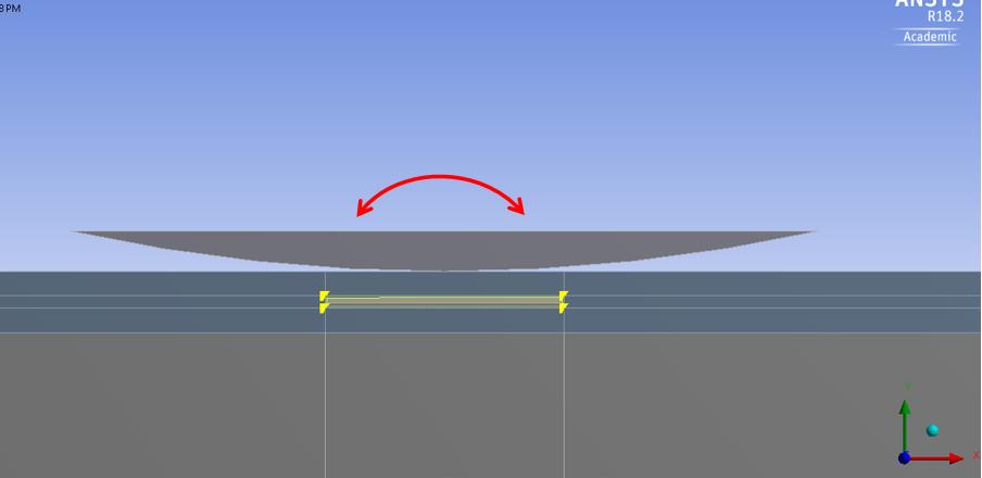 In the second step, I will constrain the y-displacement of the pilot-node, thus maintaining contact pressure onto the pavement, while moving the x-location of the pilot node back and forth, as shown below. This should result in a rolling action due to friction between the rocker and pavement.