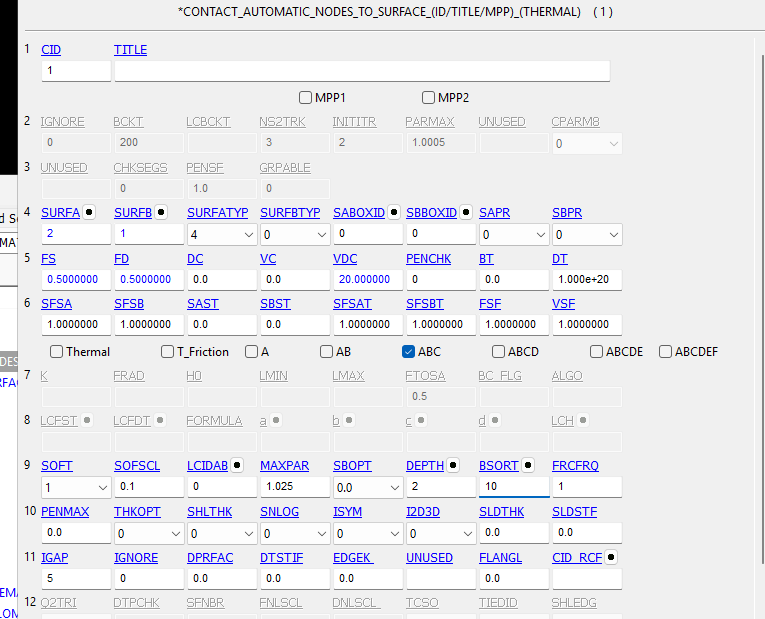 October 28, 2025 at 1:48 pmRam Gopisetti Ansys EmployeeHi, I don’t believe this issue is related to contact. However, you can try increasing the stiffness parameters using SFSA and SFSB. It is also advisable to set the STRETCH value in SECTION_SPG to 1.01 when modeling with materials mat72, mat84, mat96, mat111, mat159, mat272, and mat273. Adjust this value as necessary, followed by fine-tuning the FS parameter. Additionally, set the Dilation parameter to 1.6, KERNAL to 2, SMSTEP to 30, and IDAM to 1. For improved evaluation of the model, it is recommended to render the SPG mesh as particles, which provides a clearer visual assessment of the cross-section. Cheers, Ram -