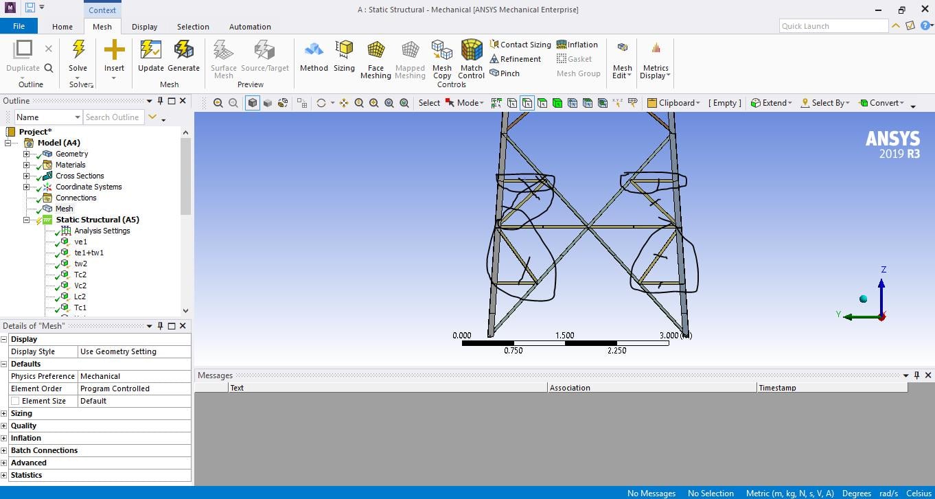 SubscriberYou need to set the Element size to a number larger than the total height of the model so that there is only 1 element on each line body. You only want one link element on each line. If the line body represents a wire, then you might want to set the element to be tension only so that it doesn't carry any compressive force.
