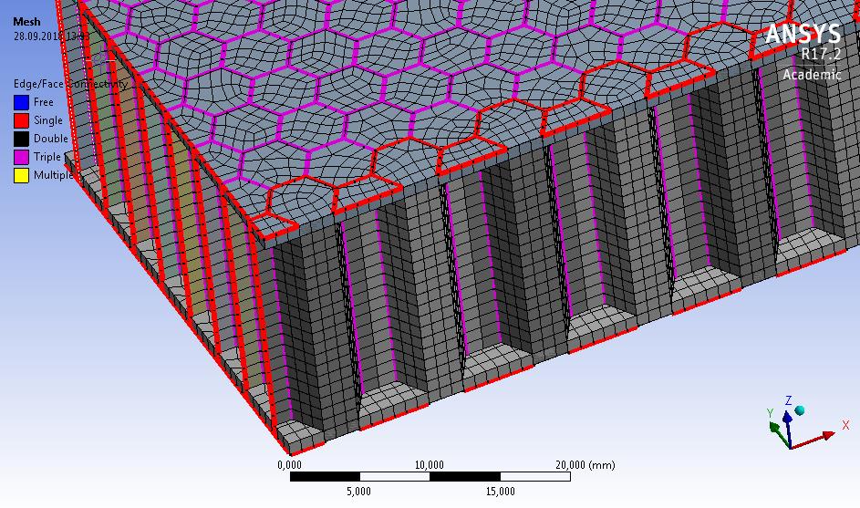 As for the honeycomb, I tried doing what you suggested and by showing the mesh in the display it seems that the faces are meshed, but I still got the same message after trying to run the simulation, so I went to the worksheet and again the specific faces had no mesh: