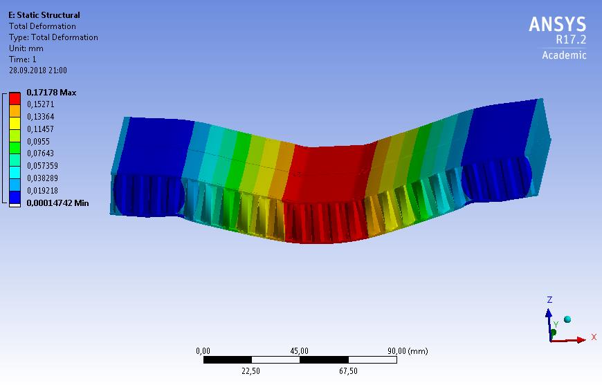 Results in total deformation, z = 0,126 upper face at the center /Â z = 0,120 under face at the center: