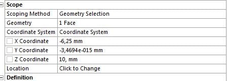 Force Applied in an Area : 25x75 , force direction along Z axis: