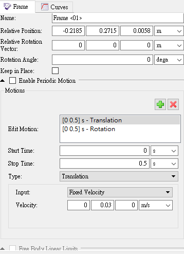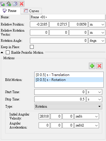 SubscriberHello May I ask if adding multiple motions to a single Motion Frame is as shown in the picture below? Because I made such a setting to bring the Motion Frame into the roller, after the roller moves, it will start to rotate around the rotation center of the initial roller position (-0.2185,0.2715,0.0058) and cannot be linearly translated. Even if the Relative Position is set to the origin (0,0,0), the roller will still rotate around the origin. Is there any setting I need to modify?