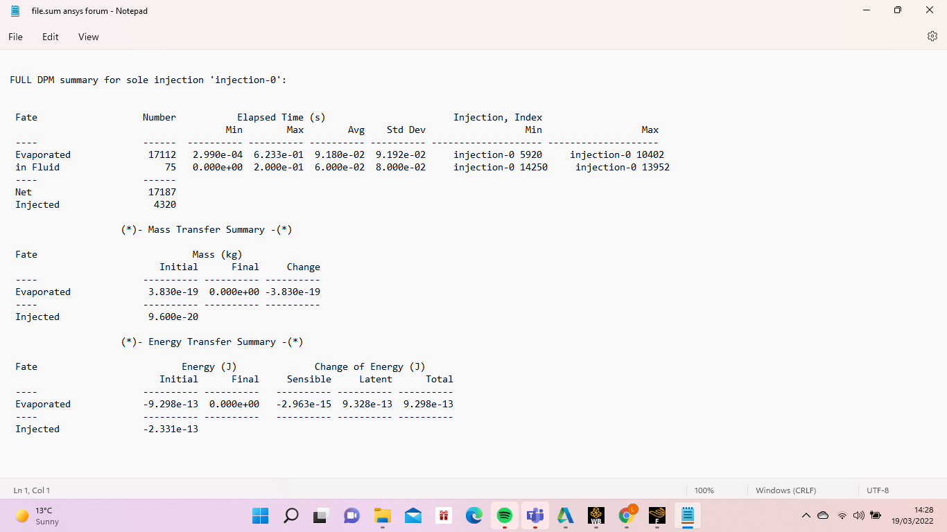 March 19, 2022 at 1:29 pmAmine Ben Hadj Ali Ansys EmployeeIf you display the particle summary what do you see in the console?