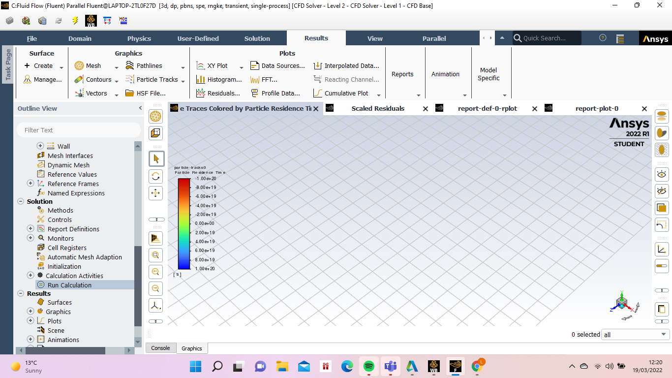 March 19, 2022 at 2:29 pmMarch 19, 2022 at 3:55 pmAmine Ben Hadj Ali Ansys EmployeeAlmost all particles have evaporated. So no particles traces can be displayed as they are not there. The other remaining particles are still in domain and you should be able to see them. You scale up the size of displayed particles.