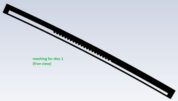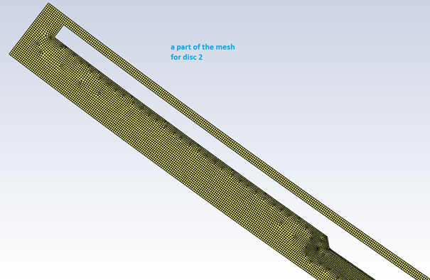 The component mesh for the disc 1 is shown here. Note that the mesh is very fine and we see the meshing part in black. The borders for the mesh are all defined as Overset.n