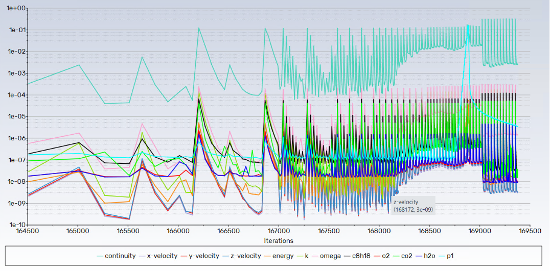 SubscriberI have been running a transient combustion simulation for the last five days. I had been varying the time step between 1e-07 s to 1e-06 s and monitoring it regularly. Last night, I kept the time step size at 5e-07 and the residual behavior got worse as the case ran overnight. It comppleted 5594 time steps this morning. Can I lower the step size and continue running this case from 5594? I did have the case served at an earlier time step 5280 (prior to residuals getting worse) so I could start from that time step.