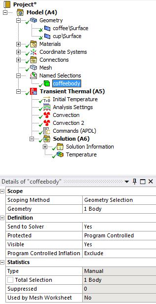 Click on the Body filter and click on the coffee then type N to create a Named Selection named coffeebody