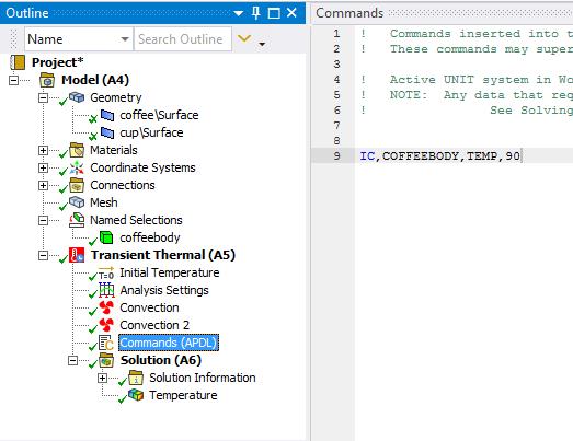 Click on Commands and type in the command shown below: IC,COFFEEBODY,TEMP,90