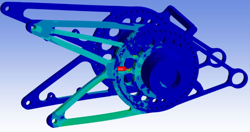 Through iterative simulation and design refinement, we strategically removed material from low-stress regions, achieving significant mass reduction without compromising structural integrity. This optimization improved power transmission efficiency, vehicle dynamics, and overall prototype performance.