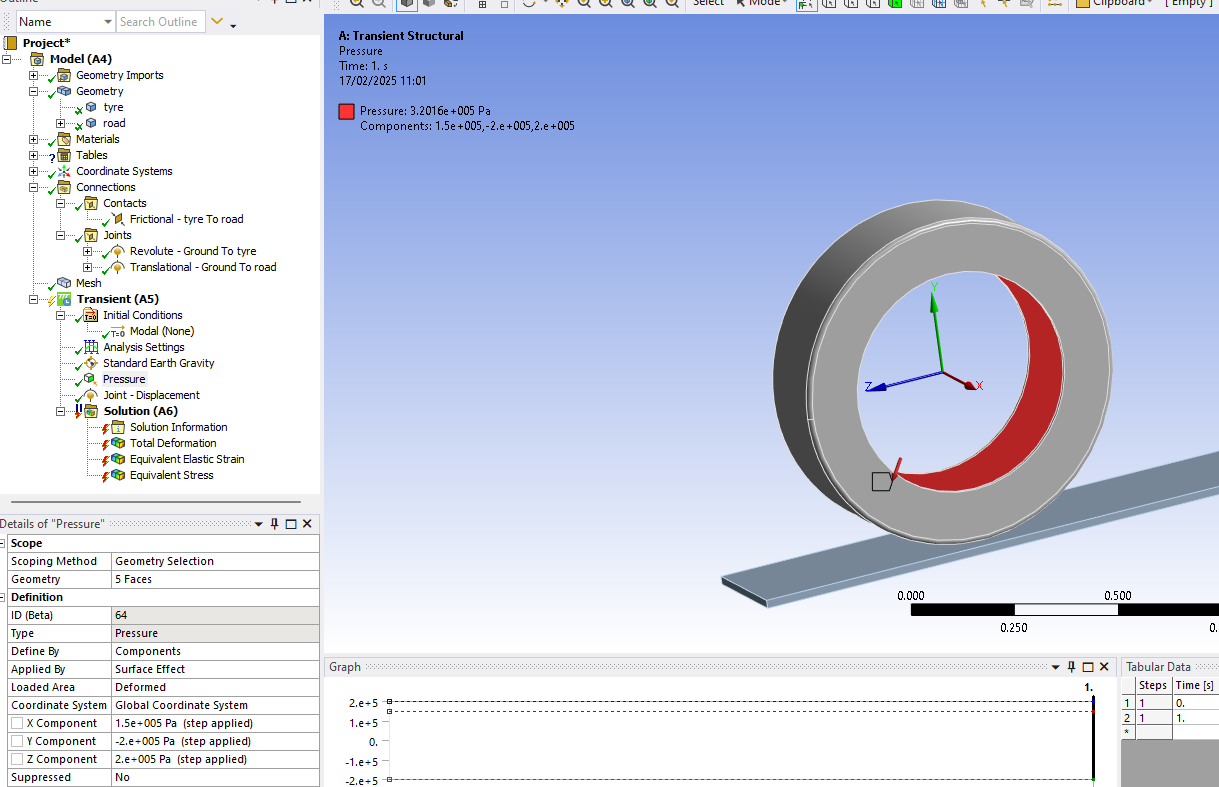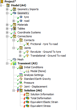 I am new to workbench and having difficulty setting up my car tyre simulation. I am trying to simulate a car tyre that is in motion on road road to monitor its contact patch and analyse the stress/strain/deformation etc.Â