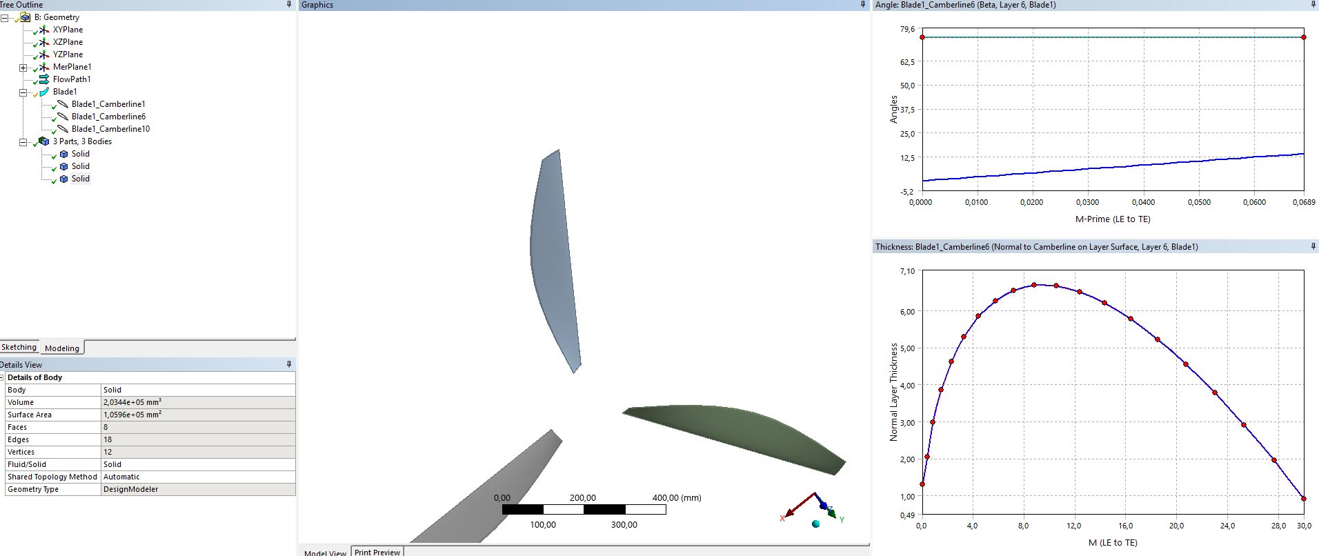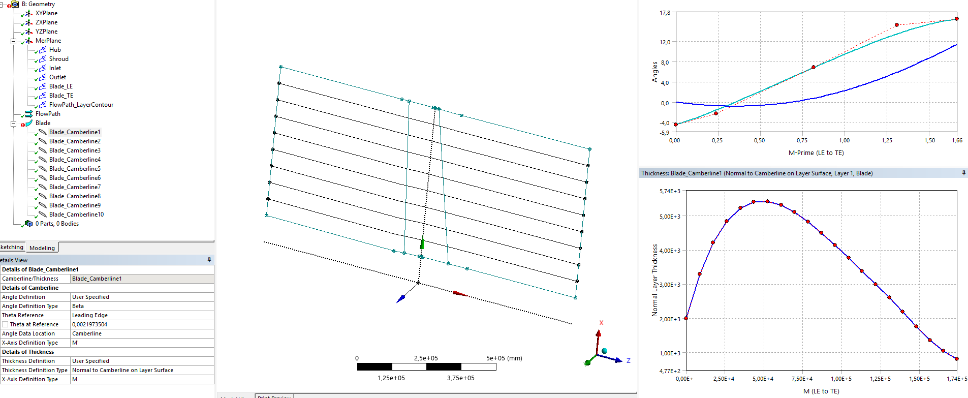 Now can go ahead to create the geometry. Once the curve type is set, create the geometry from this BladeGen design. This will allow the specific curve to be available in the Blade Editor for parameterization.Â